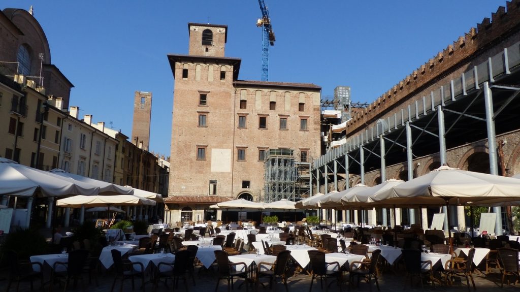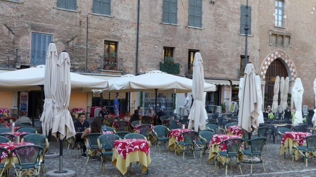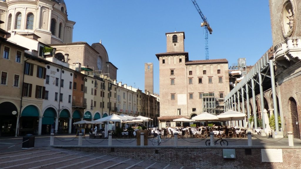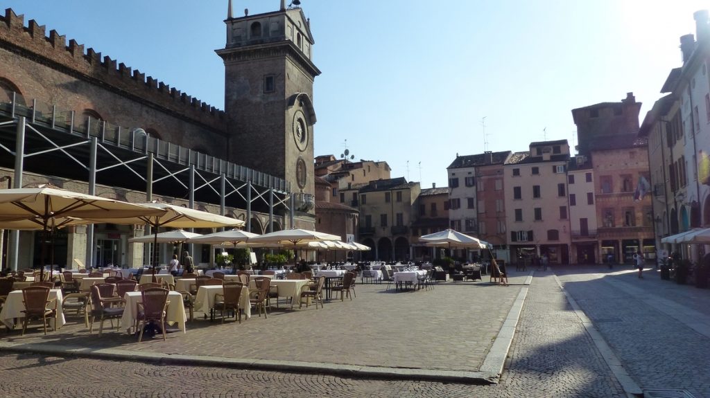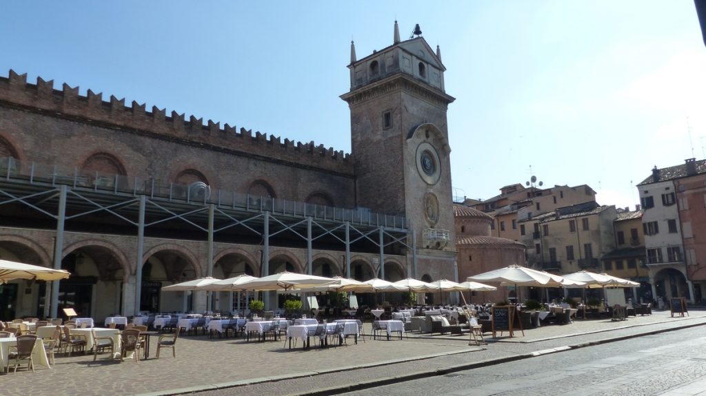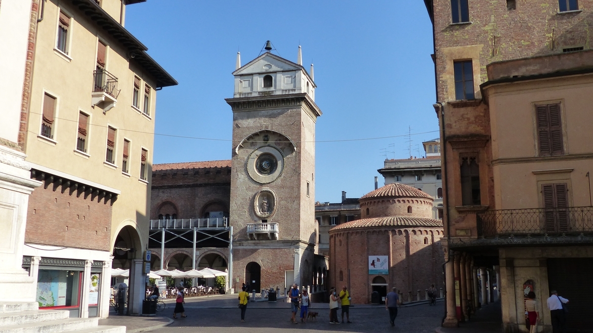 - Piazza delle Erbe: Dieser lebendige Platz ist das Herz des städtischen Lebens in Mantua. Hier finden Sie einen Markt, der seit dem Mittelalter besteht. Der Platz ist von historischen Gebäuden umgeben, darunter der Uhrturm (Torre dell’Orologio) und die Rotonda di San Lorenzo, eine der ältesten Kirchen der Stadt.